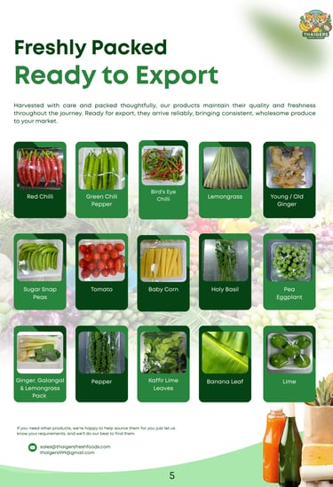Offering high-quality ingredients highlighting Thailand's agricultural richness and freshness for world markets.